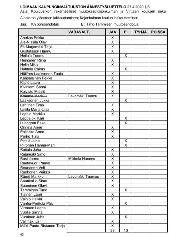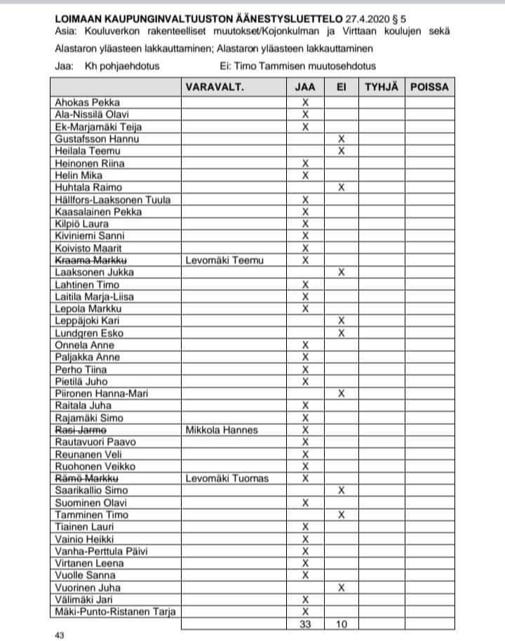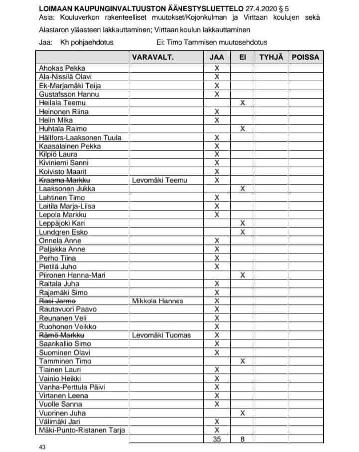 Kyläkoulu ja Ryhmis lakkautettiin kaupunginvaltuuston 27.4.2020 tekemällä päätöksellä. Kopiot kokouspöytäkirjan äänestysluetteloista löytyvät täältä, täältä ja täältä.